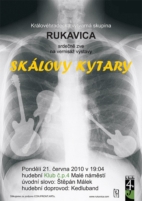 21. 6. 2010 | Soukromý hudební klub č. p. 4, Malé náměstí, Hradec Králové Vernisáž výstavy Skálovy kytary výtvarné skupiny Rukavica. plakát (jpg) |